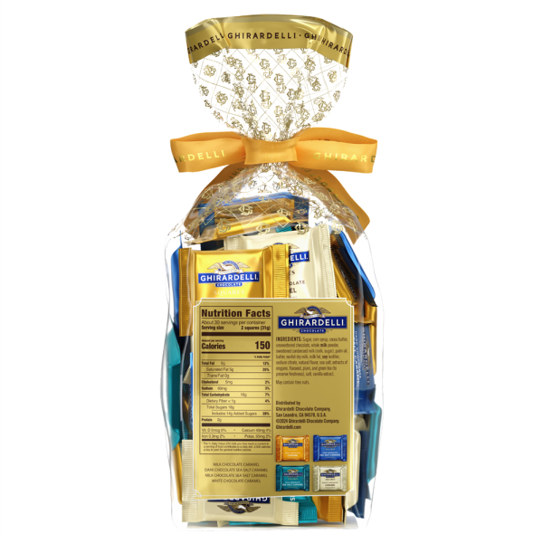 - Contains a 2lb assortment of individually wrapped SQUARES in 4 flavors: Milk Chocolate Caramel, Dark Chocolate Sea Salt Caramel, Milk Chocolate Sea Salt Caramel & White Chocolate Caramel