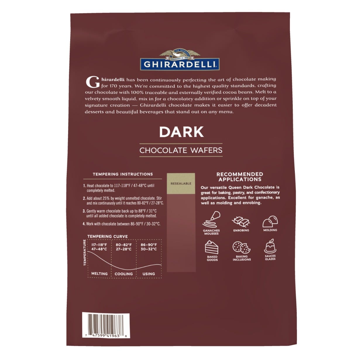 Our versatile Stanford Milk Chocolate with hints of butter and caramel notes is great for a variety of chocolate applications including ganache, molding, and enrobing.