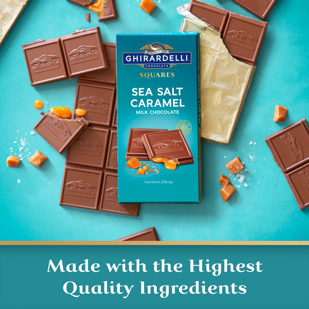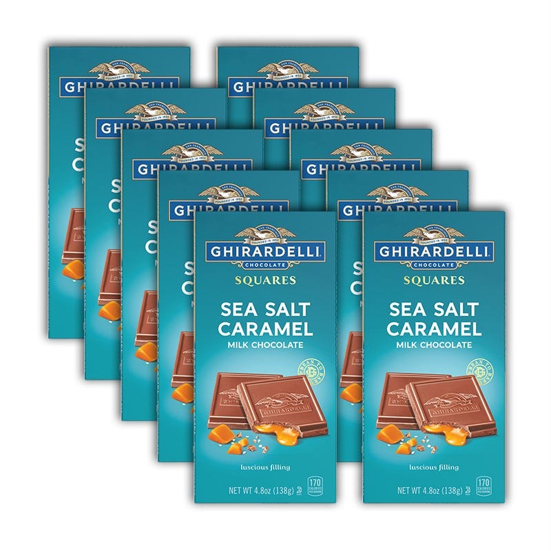 Enjoy the perfect indulgence with each bite of these GHIRARDELLI Milk Chocolate Sea Salt Caramel Bars. Perfectly crafted with luscious caramel filling and a hint of sea salt in indulgent milk chocolate, these bars are sure to satisfy any sweet tooth. Each case includes ten (10) 4.8 oz bars, making it easy to share the love, portion out your chocolate bars, or just keep them all for yourself! GHIRARDELLI Chocolate is made with the highest quality ingredients and cocoa beans for a luxurious treat.
