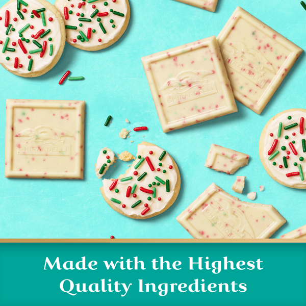 GHIRARDELLI White Chocolate Sugar Cookie Squares feature rich, white chocolate with cookie bits and festive sprinkles. Each individually wrapped chocolate square is made with rich, high-quality ingredients. The perfect gift for a variety of occasions, these delicious chocolates are a great way to put smiles on the faces of your colleagues, family and friends. Also ideal for entertaining, these white chocolate squares are delectable post-dinner treats, and they add a festive touch to candy dishes. Each piece of these kosher white chocolate candy squares is crafted with care using high-quality ingredients for a melt-in-your-mouth indulgence.
